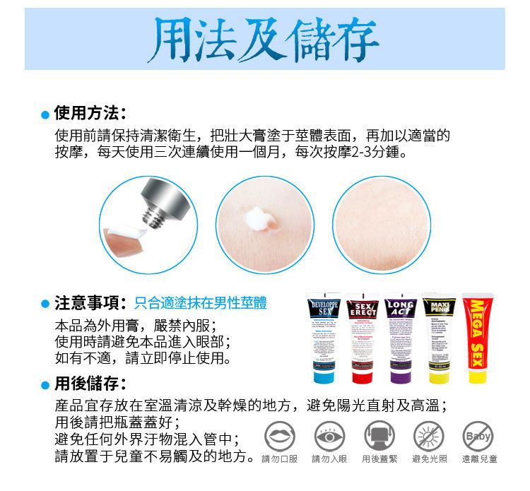 Công dụng chính: Tăng chiều dài dương vật lên đến vài cm, mở rộng chu vi, tăng lưu lượng máu và hormone nam