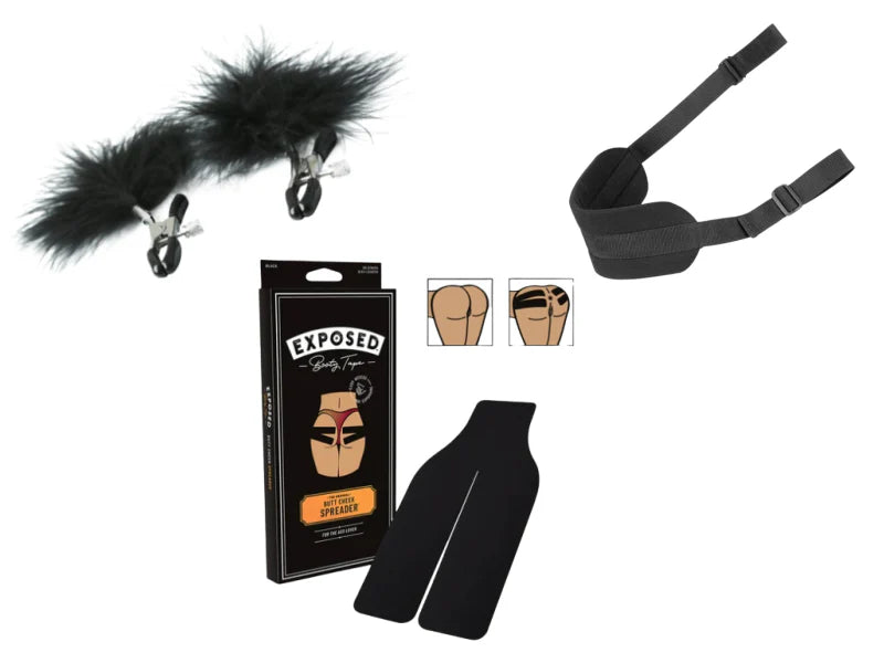 Bắt đầu hành trình với kẹp núm vú lông vũ – yêu cầu đối tác nhảy lap dance để tăng sự xấu hổ kích thích. 😏 Tiếp theo, dùng Booty Tape Exposed để tape back mông trong tư thế doggy, cảm nhận luồng không khí chạm vào vùng kín thường bị che giấu. Cuối cùng, đeo Doggie Style Strap để tận hưởng sex đam mê với lực đẩy sâu hơn bao giờ hết.