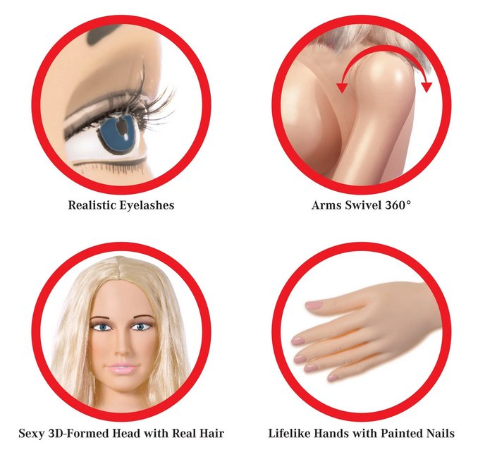 Búp bê sex phồng 3D này biến những giấc mơ táo bạo thành hiện thực. Đầu hình thành 3D với lông mi giả tự nhiên, mái tóc óng ả gắn liền, tay xoay 360 độ linh hoạt. Móng tay, móng chân sơn màu xinh xắn – tất cả tạo nên sự sống động khó cưỡng. Sử dụng búp bê tình dục phồng hơi Hannah Harper, bạn sẽ cảm nhận sự gần gũi như thật! 💋