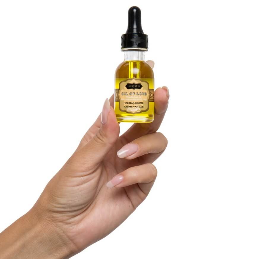 Oil of Love Vanilla Creme: Dầu vani kem hôn được, tạo cảm giác ấm áp lan tỏa trên da. 🔥