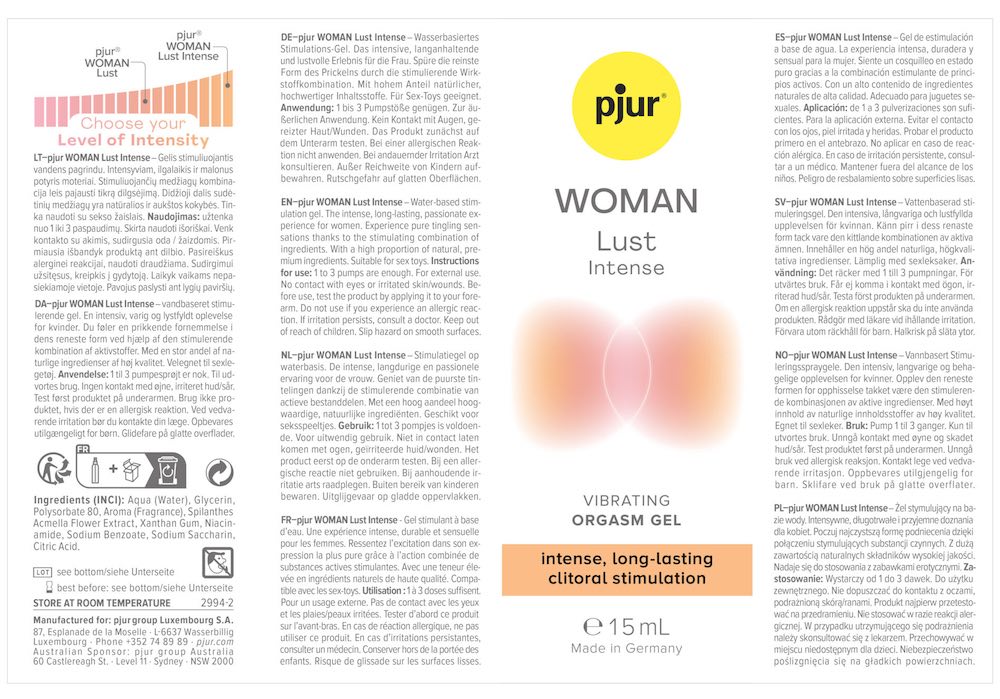 Pjur Women Intense Orgasm Essence sở hữu thông số ấn tượng, đảm bảo chất lượng cao cấp từ Đức: