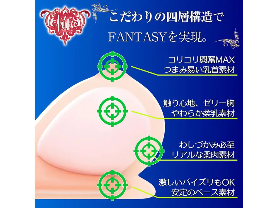 Series Real Body luôn dẫn đầu xu hướng với bộ ngực lý tưởng, và Kiwami Namachichi Fantasy chính là đỉnh cao mới. Kích thước lớn đòi hỏi thiết kế phức tạp, nhưng nhờ 4 lớp cấu trúc tinh tế, sản phẩm mang đến cảm giác chạm mềm mịn, rung động như da thịt thật. Mỗi đường cong bell-shaped đều được chau chuốt, tạo sức hút khó cưỡng từ cái nhìn đầu tiên.