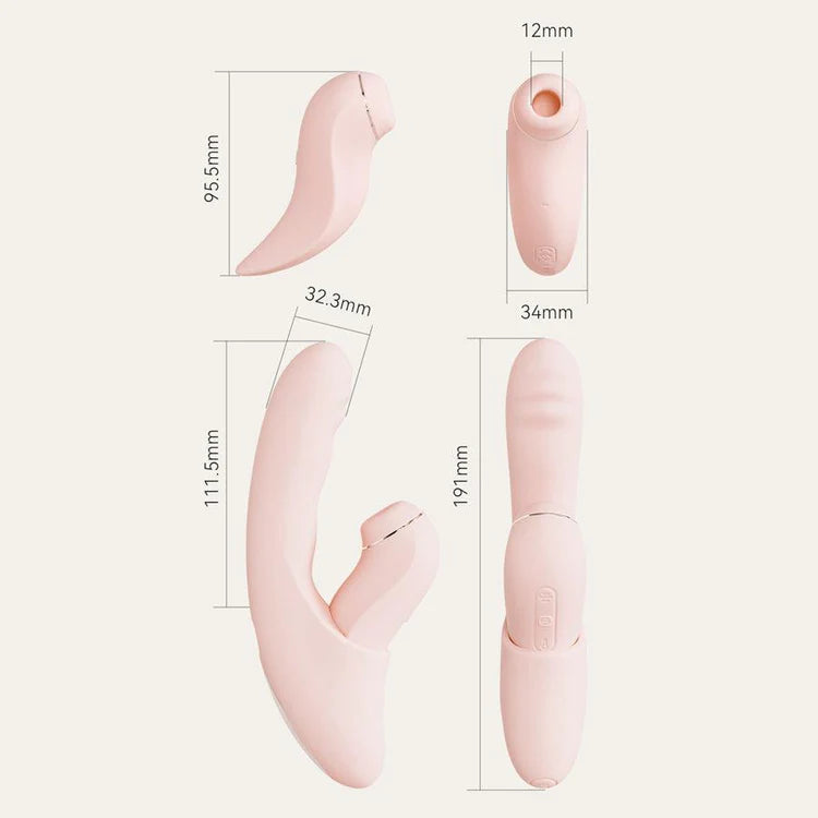 Thiết kế tách rời hai trong một 💖: Kết hợp hút, đẩy rút, rung và nhiệt, đáp ứng đa dạng nhu cầu khoái cảm.