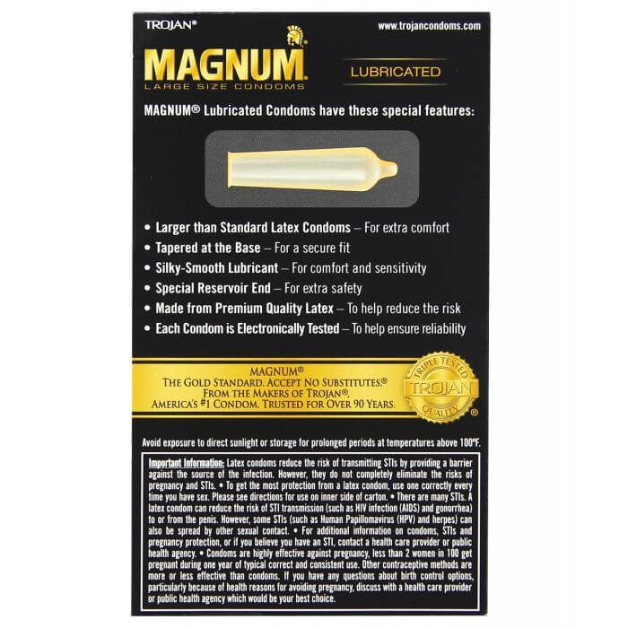 Bạn đang tìm kiếm bao cao su lớn mang lại sự thoải mái tối đa? Trojan Magnum chính là lựa chọn hoàn hảo! Với thiết kế rộng rãi hơn so với bao cao su thông thường, sản phẩm giúp bạn tự tin tận hưởng khoảnh khắc thăng hoa mà không hề gò bó. 😎